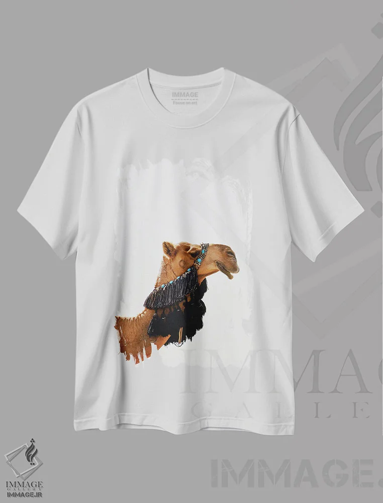 تیشرت سفید طرح دار شتر سفید، مدیوم اثر کارن منداو | فروشگاه ایماژ تیشرت طرح دار شتر سفید اثر کارن منداو