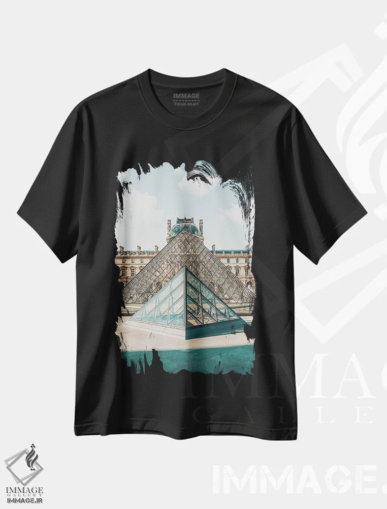 تیشرت مشکی طرح دار موزه لوور پاریس، مدیوم اثر کارن منداو | فروشگاه ایماژ تیشرت طرح دار موزه لوور پاریس اثر کارن منداو