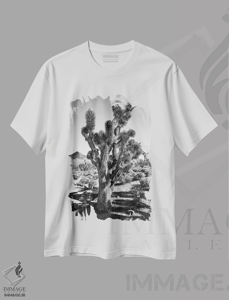 تیشرت سفید طرح دار درخت جاشوا، مدیوم اثر کارن منداو | فروشگاه ایماژ تیشرت طرح دار درخت جاشوا اثر کارن منداو