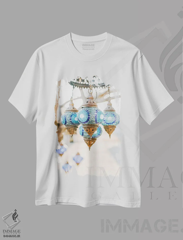 تیشرت مشکی طرح دار پترا، اردن با فانوس ها، تزئینی اثر کارن منداو | فروشگاه ایماژ تیشرت طرح دار پترا، اردن با فانوس ها اثر کارن منداو