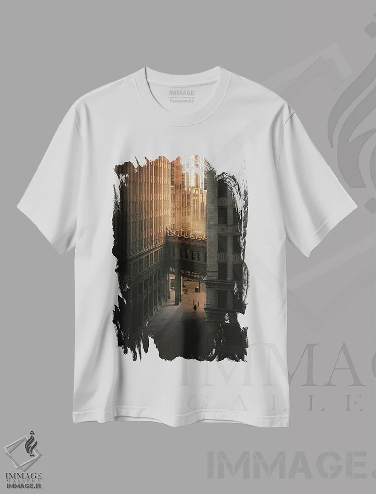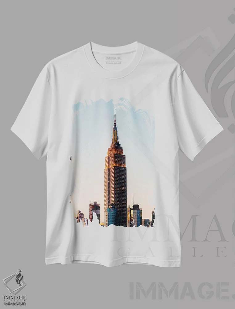 تیشرت سفید طرح دار ساختمان امپایر استیت نیویورک، مدیوم اثر کارن منداو | فروشگاه ایماژ تیشرت طرح دار ساختمان امپایر استیت نیویورک اثر کارن منداو
