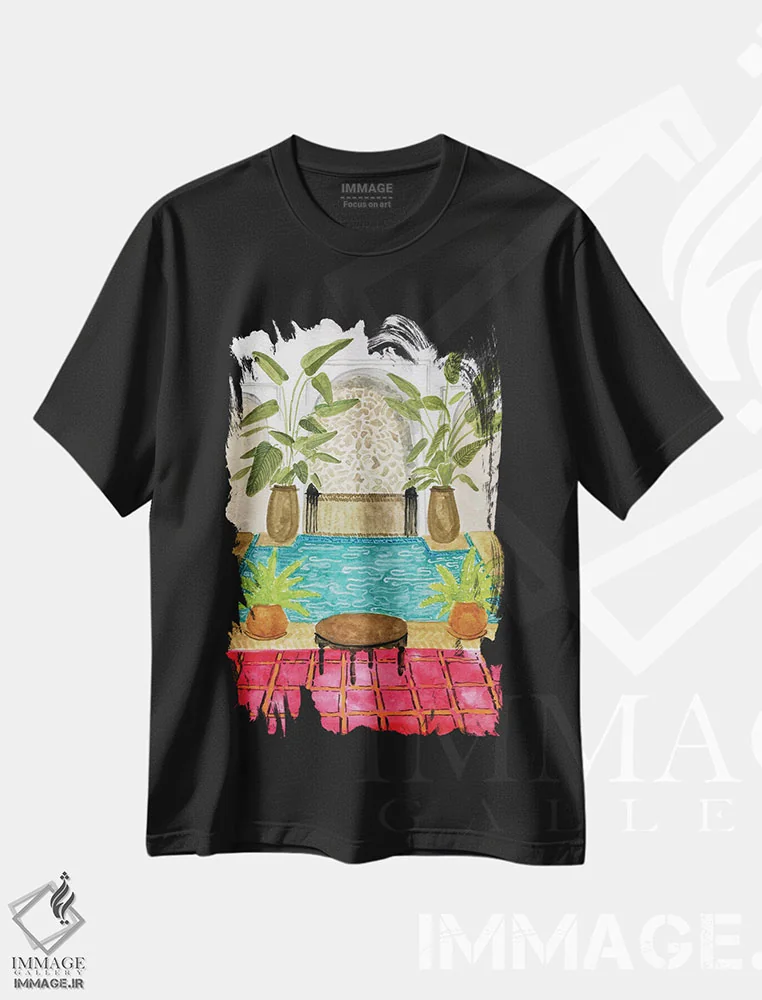 تیشرت مشکی طرح دار ریاض قرمز، مدیوم اثر کارولین چسیا | فروشگاه ایماژ تیشرت طرح دار ریاض قرمز اثر کارولین چسیا