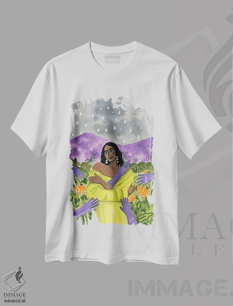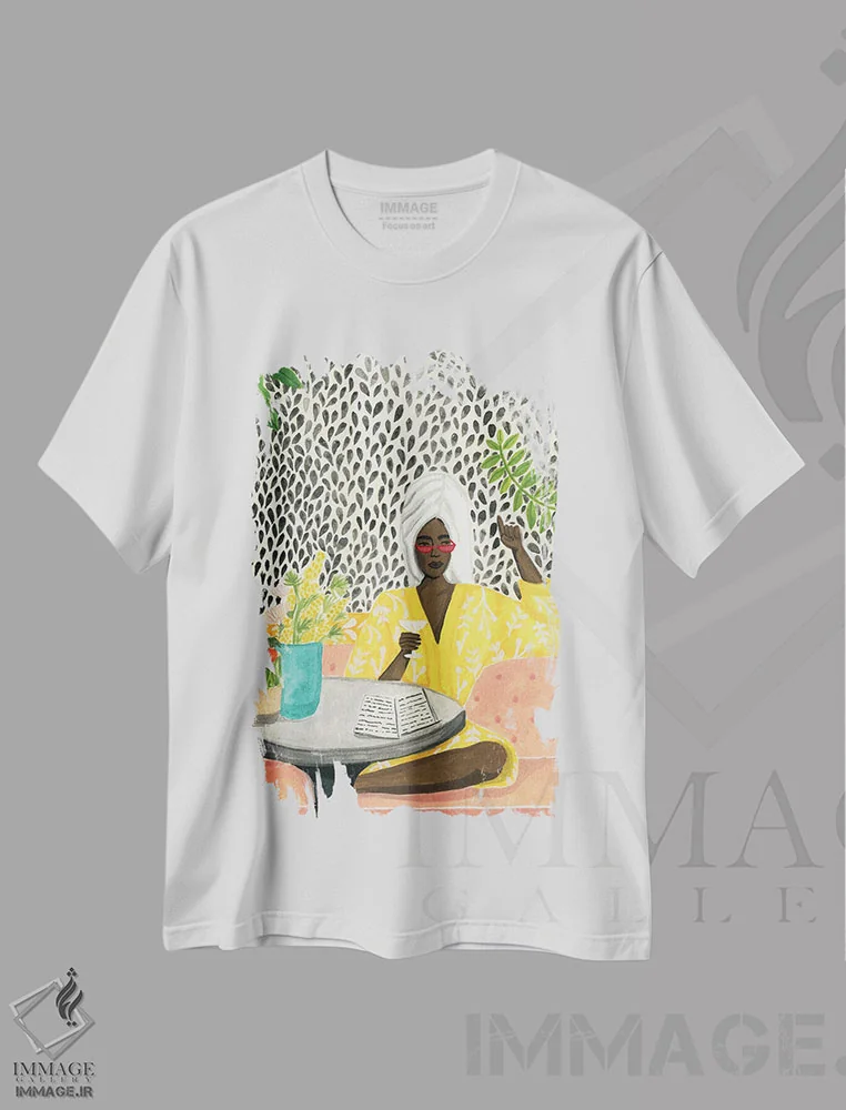 تیشرت سفید طرح دار آرامش، هنر آمریکایی آفریقایی تبار اثر کارولین چسیا | فروشگاه ایماژ تیشرت طرح دار آرامش اثر کارولین چسیا