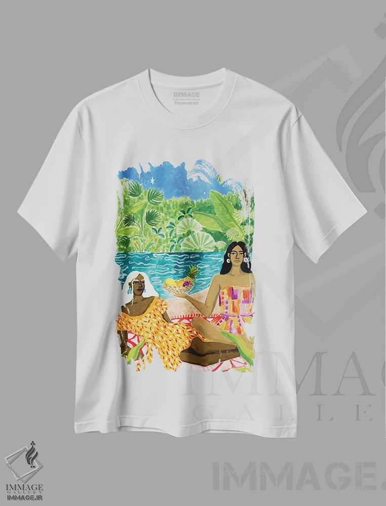 تیشرت سفید طرح دار بانوان کنار رودخانه، هنر آمریکایی آفریقایی تبار اثر کارولین چسیا | فروشگاه ایماژ تیشرت طرح دار بانوان کنار رودخانه اثر کارولین چسیا