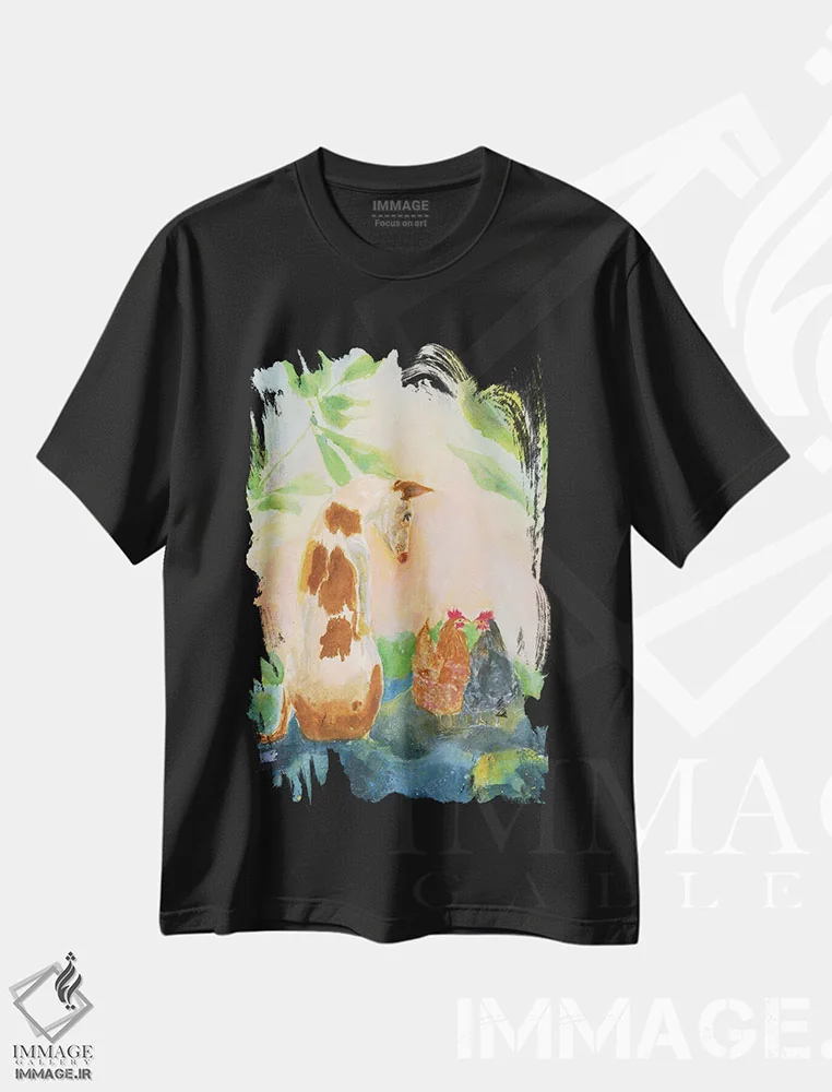 تیشرت مشکی طرح دار مرغ شماره ۱، دکور معاصر اثر کانی کالم | فروشگاه ایماژ تیشرت طرح دار مرغ شماره اثر کانی کالم