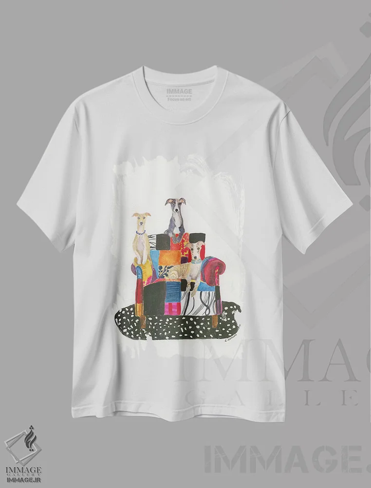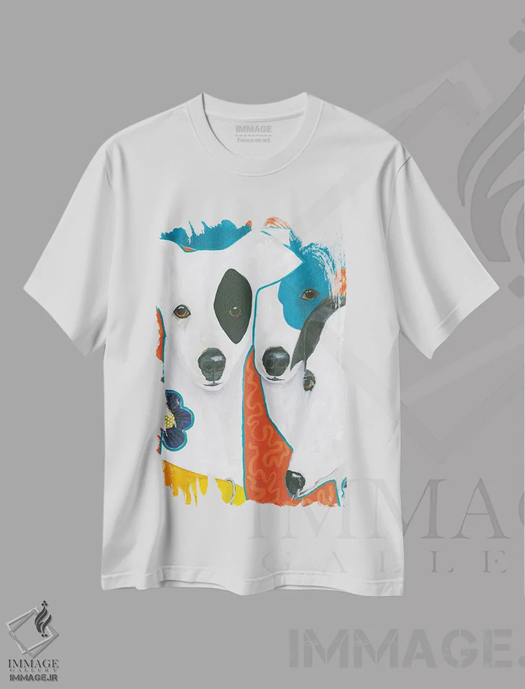 تیشرت سفید طرح دار پودل باغی، دکور معاصر اثر کانی کالم | فروشگاه ایماژ تیشرت طرح دار پودل باغی اثر کانی کالم