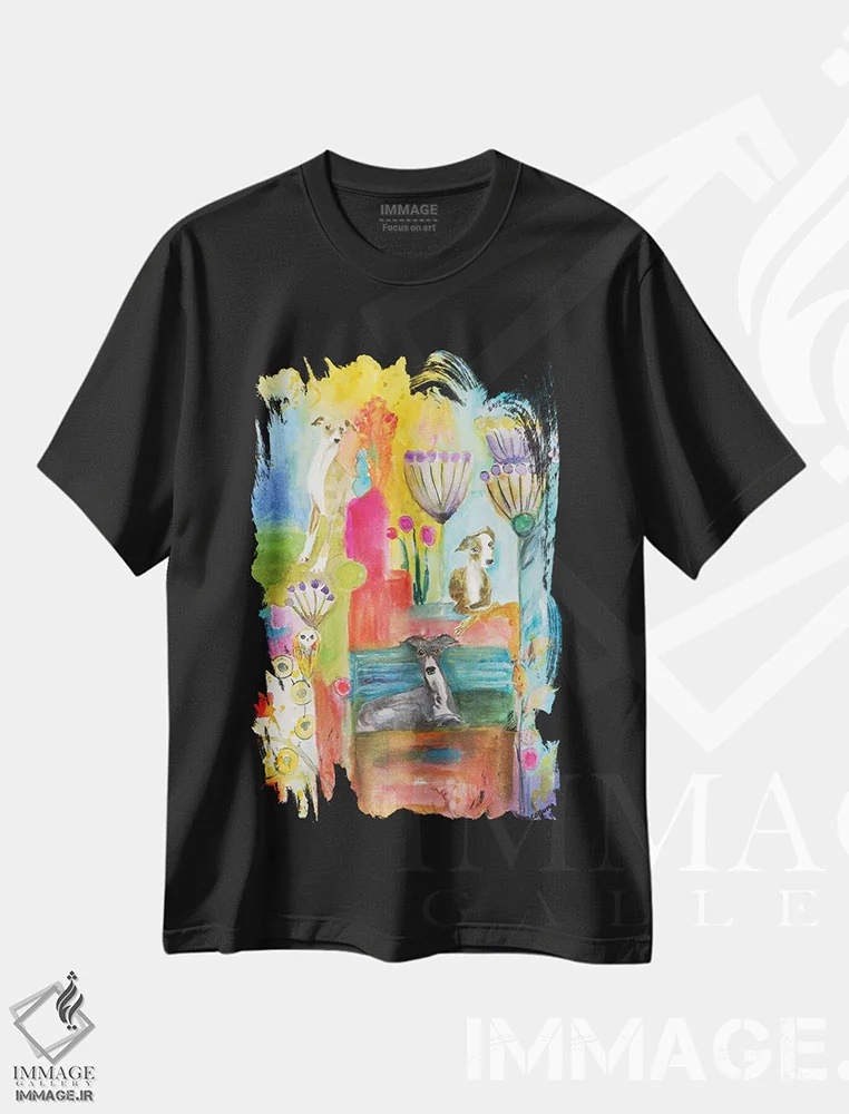 تیشرت مشکی طرح دار سگان نور مهتاب، دکور معاصر اثر کانی کالم | فروشگاه ایماژ تیشرت طرح دار سگان نور مهتاب اثر کانی کالم