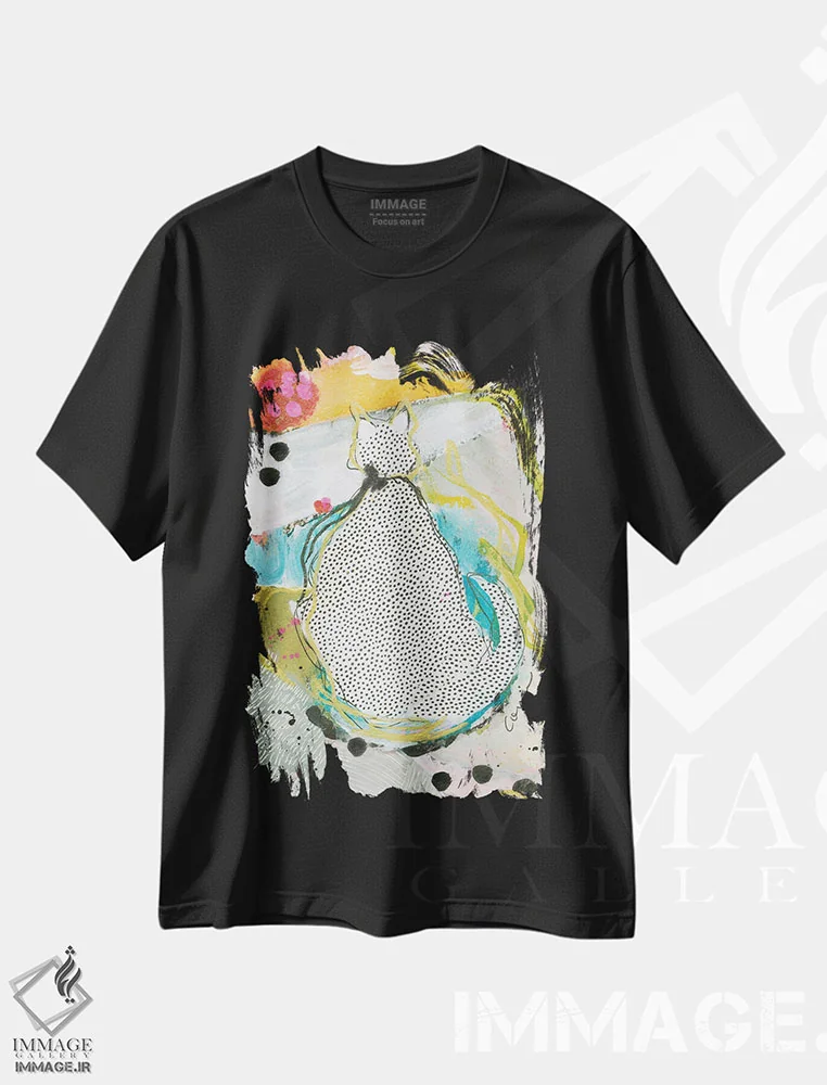 تیشرت مشکی طرح دار گربهٔ فِلور، دکور معاصر اثر کانی کالم | فروشگاه ایماژ تیشرت طرح دار گربهٔ فِلور اثر کانی کالم