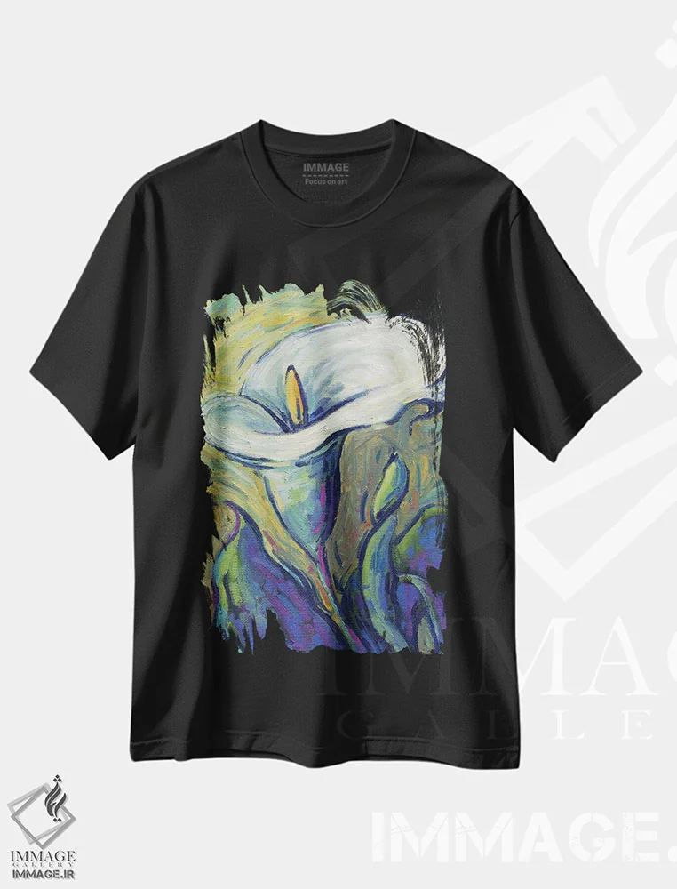 تیشرت مشکی طرح دار کالا لیلی، دکور معاصر اثر کانی کیم | فروشگاه ایماژ تیشرت طرح دار کالا لیلی اثر کانی کیم