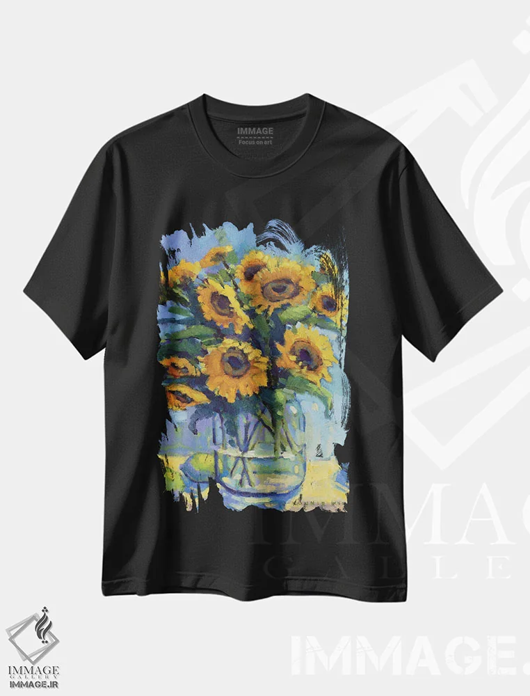 تیشرت مشکی طرح دار رنگ های بهار هشت، دکور معاصر اثر کانی کیم | فروشگاه ایماژ تیشرت طرح دار رنگ های بهار هشت اثر کانی کیم