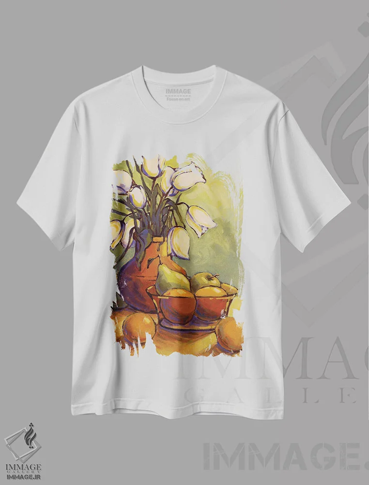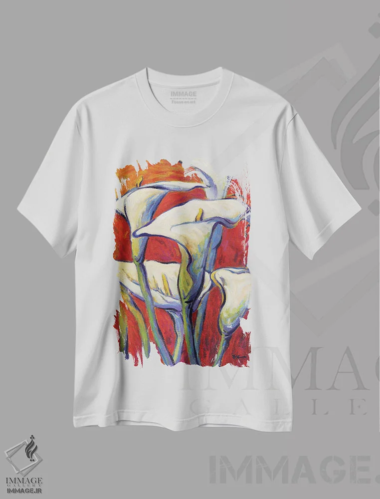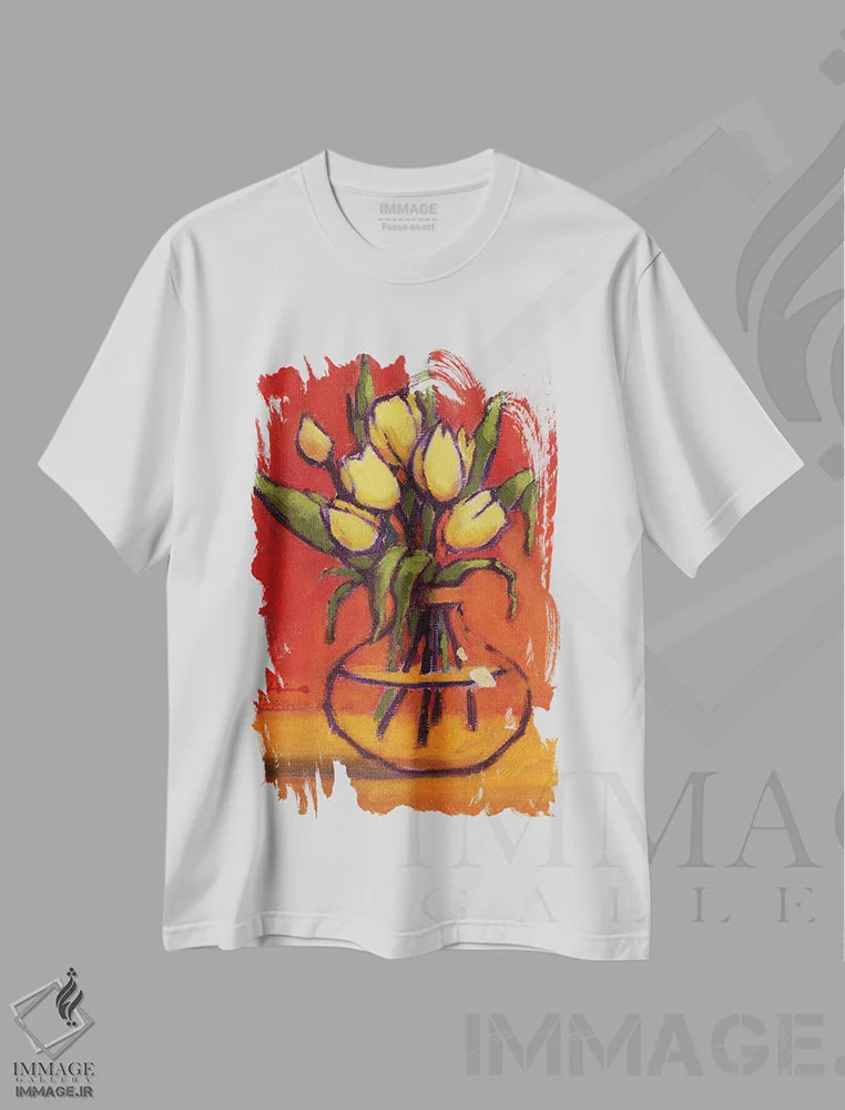 تیشرت سفید طرح دار لاله ها ۱، دکور معاصر اثر کانی کیم | فروشگاه ایماژ تیشرت طرح دار لاله ها اثر کانی کیم