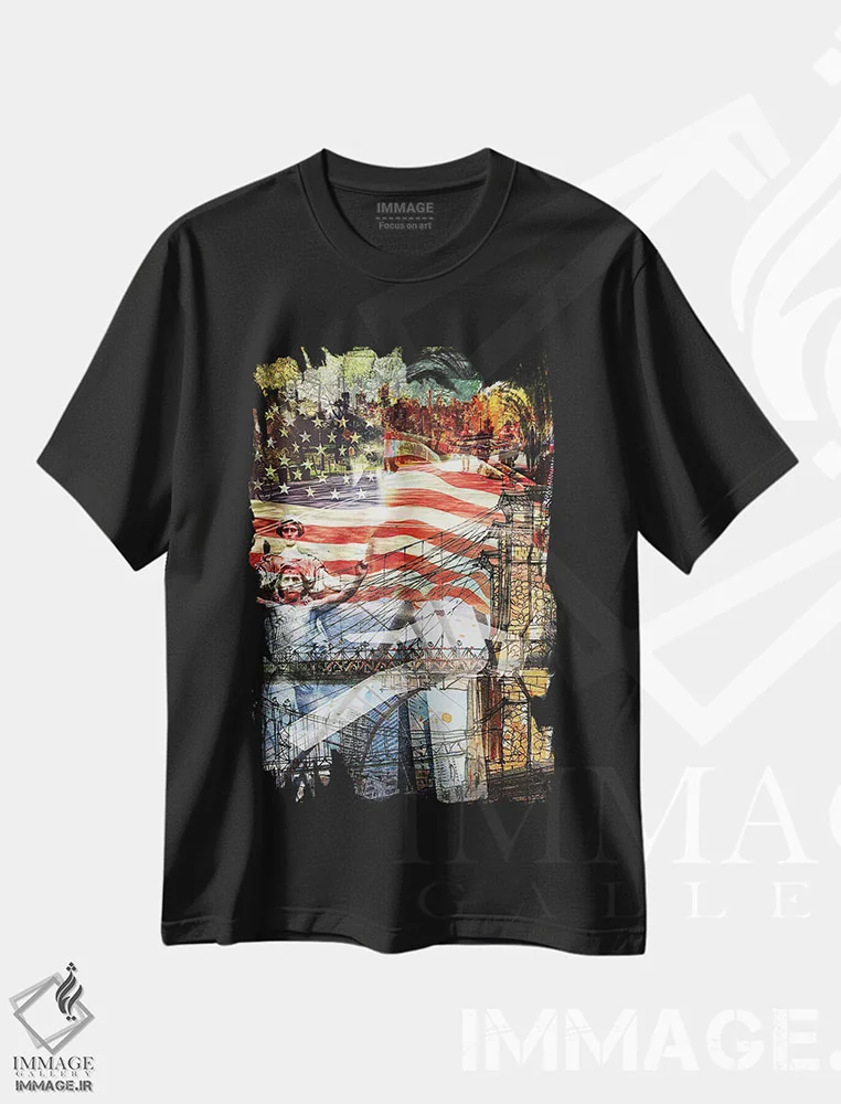 تیشرت مشکی طرح دار مجموعه نیویورک: این است آمریکا، هنر فاخر معاصر اثر کایل ویلیس | فروشگاه ایماژ