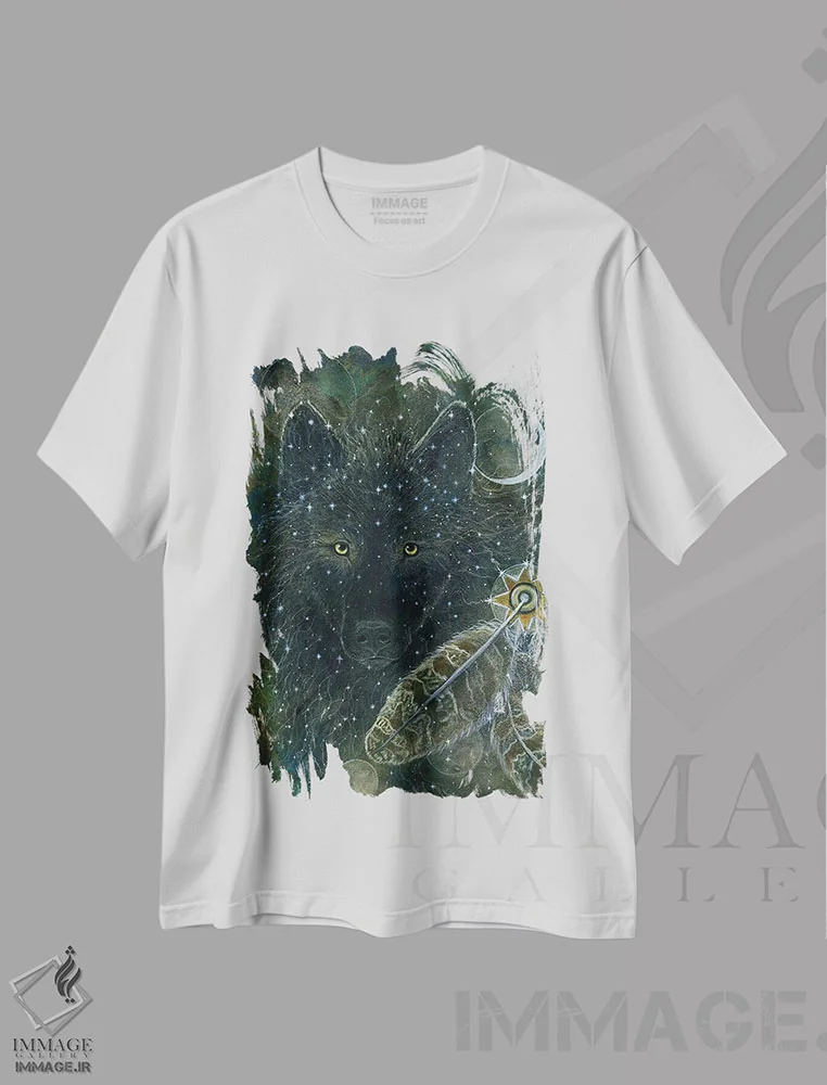تیشرت سفید طرح دار گرگ ستاره ای، دکور کلبه و لژ اثر کتی مک کللند | فروشگاه ایماژ تیشرت طرح دار گرگ ستاره ای اثر کتی مک کللند