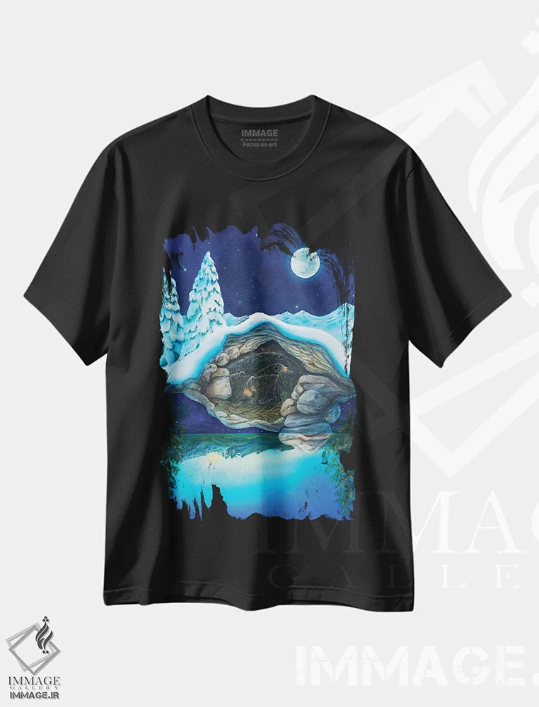 تیشرت مشکی طرح دار روح شب، دکور معاصر اثر کتی مک کللند | فروشگاه ایماژ تیشرت طرح دار روح شب اثر کتی مک کللند