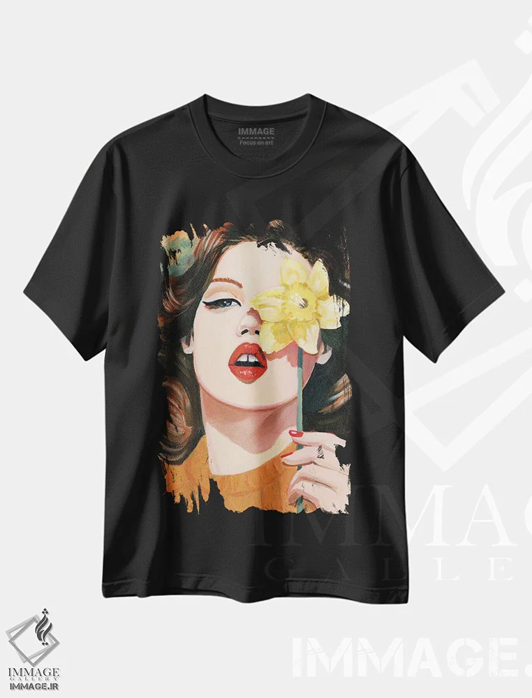 تیشرت مشکی طرح دار دختر جذاب، هنر فاخر معاصر اثر کتی مینگوس | فروشگاه ایماژ تیشرت طرح دار دختر جذاب اثر کتی مینگوس