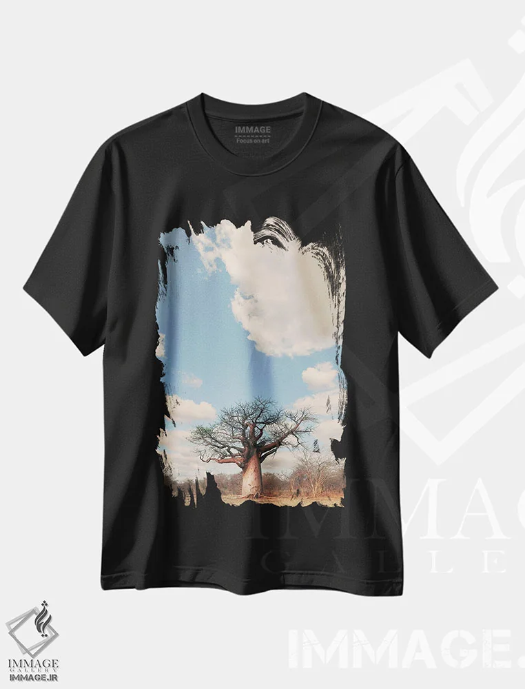 تیشرت مشکی طرح دار بائوباب نای نای I، عکاسی هنری فاخر اثر کلاوس تیدگه | فروشگاه ایماژ تیشرت طرح دار بائوباب نای نای I اثر کلاوس تیدگه