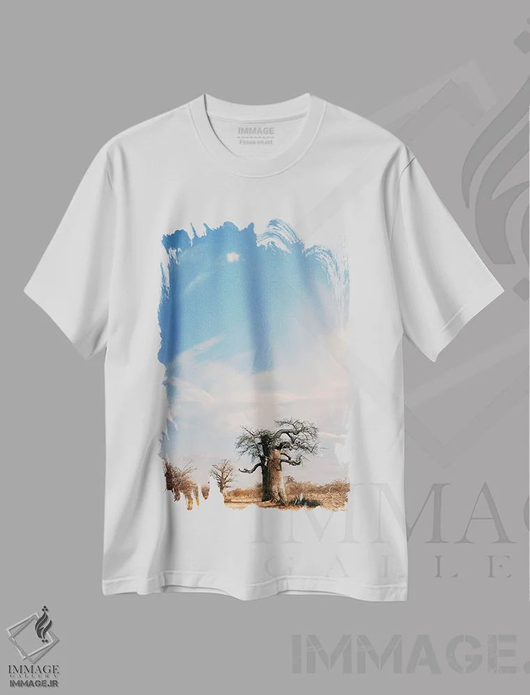 تیشرت سفید طرح دار بائوباب نای نای II، عکاسی هنری فاخر اثر کلاوس تیدگه | فروشگاه ایماژ تیشرت طرح دار بائوباب نای نای II اثر کلاوس تیدگه