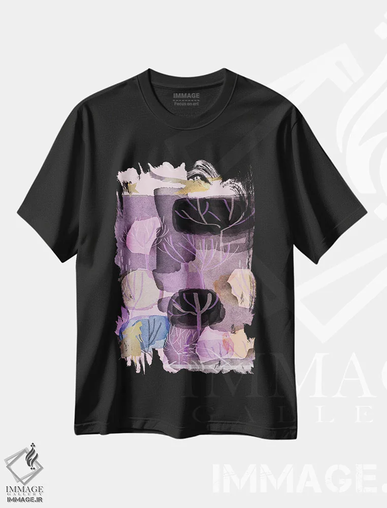 تیشرت مشکی طرح دار پُر تا لب، هنر دیجیتال اثر کلر وست وود | فروشگاه ایماژ تیشرت طرح دار پُر تا لب اثر کلر وست وود