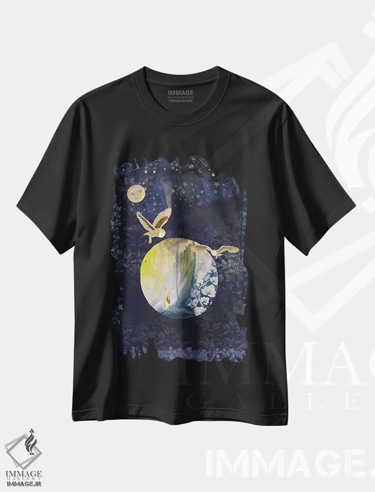 تیشرت مشکی طرح دار ماه بهاری، هنر دیجیتال اثر کلر وست وود | فروشگاه ایماژ تیشرت طرح دار ماه بهاری اثر کلر وست وود