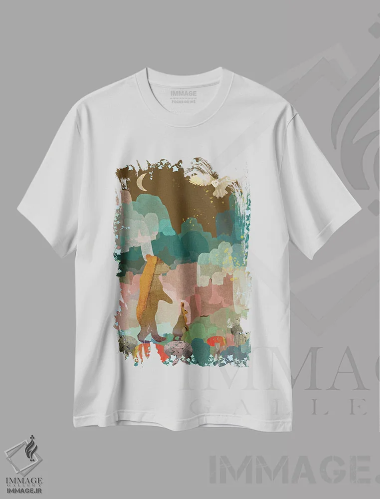 تیشرت سفید طرح دار دشت عشق، هنر دیجیتال اثر کلر وست وود | فروشگاه ایماژ تیشرت طرح دار دشت عشق اثر کلر وست وود