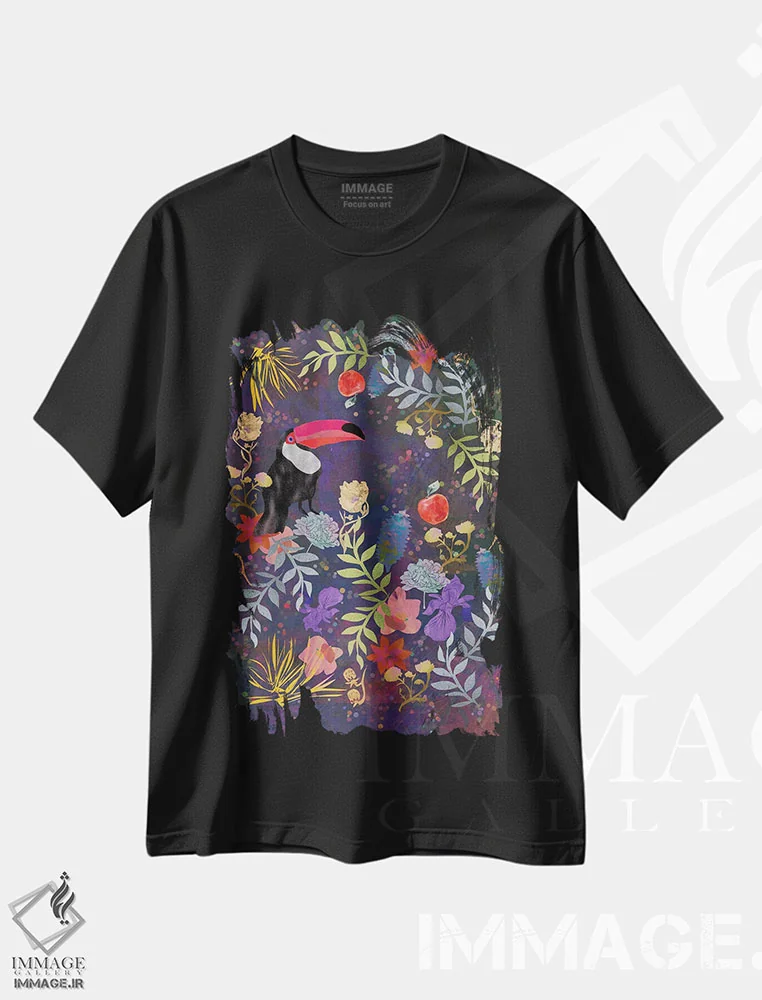 تیشرت مشکی طرح دار توکان، هنر دیجیتال اثر کلر وست وود | فروشگاه ایماژ تیشرت طرح دار توکان اثر کلر وست وود