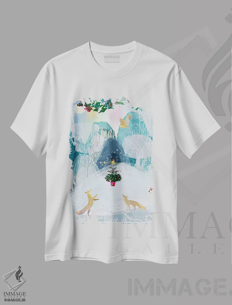 تیشرت سفید طرح دار درخت زمستانی، هنر دیجیتال اثر کلر وست وود | فروشگاه ایماژ تیشرت طرح دار درخت زمستانی اثر کلر وست وود