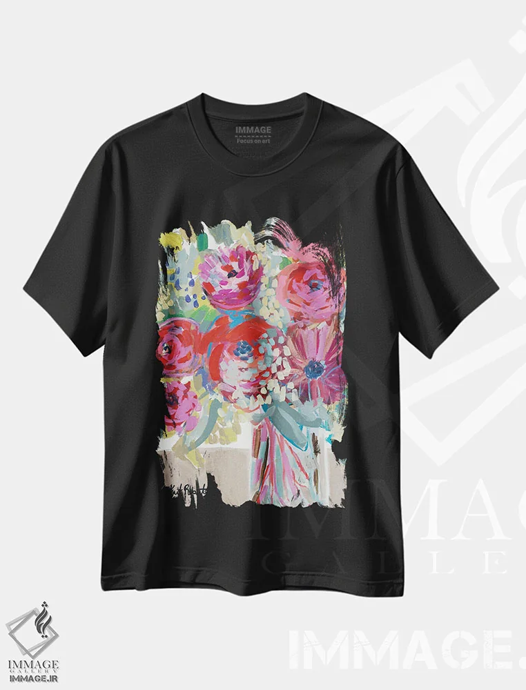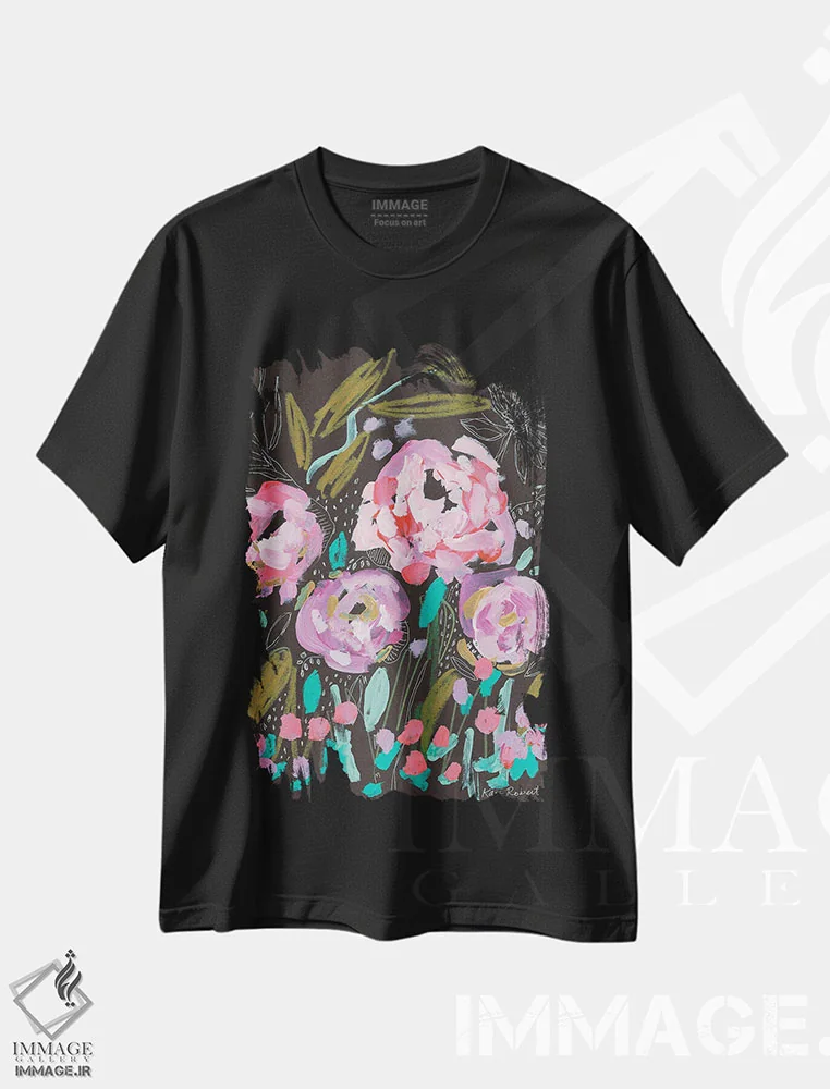 تیشرت مشکی طرح دار گل ها برای الیزا ۲، تزئینی اثر کیت رابرتس | فروشگاه ایماژ تیشرت طرح دار گل ها برای الیزا اثر کیت رابرتس
