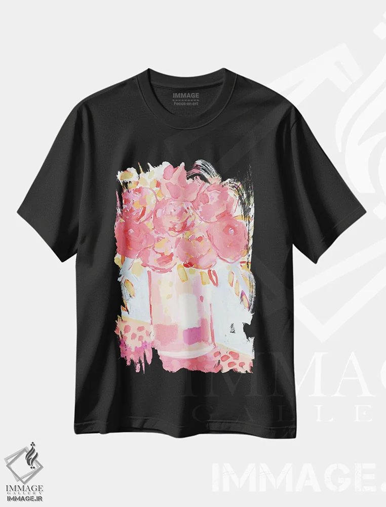 تیشرت مشکی طرح دار زیبا در صورتی، دکور معاصر اثر کیت رابرتس | فروشگاه ایماژ تیشرت طرح دار زیبا در صورتی اثر کیت رابرتس