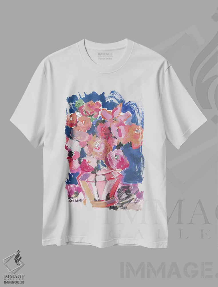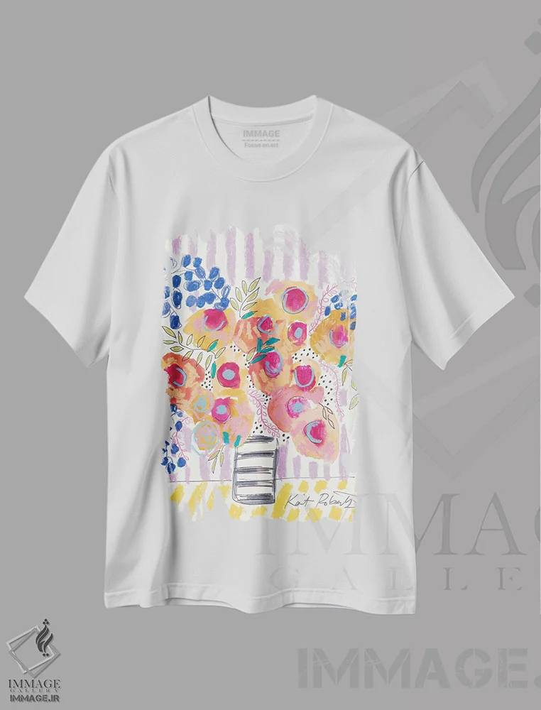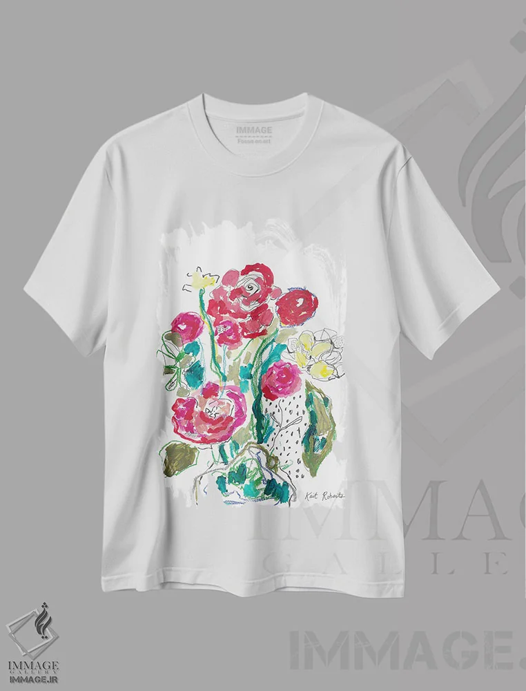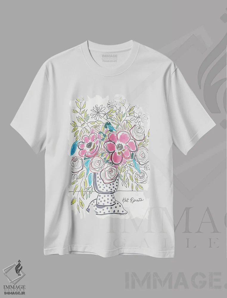 تیشرت سفید طرح دار دسته گل ورودی، دکور معاصر اثر کیت رابرتس | فروشگاه ایماژ تیشرت طرح دار دسته گل ورودی اثر کیت رابرتس