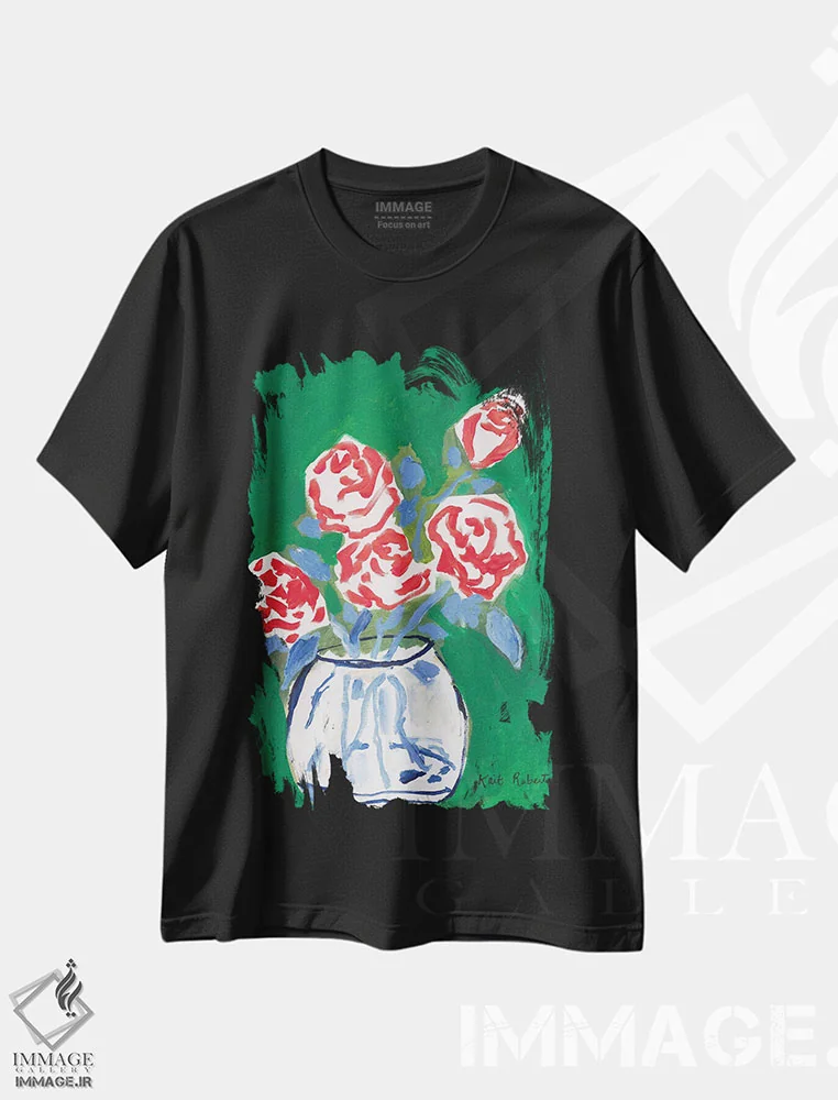 تیشرت مشکی طرح دار گل ها برای جسیکا، دکور معاصر اثر کیت رابرتس | فروشگاه ایماژ تیشرت طرح دار گل ها برای جسیکا اثر کیت رابرتس