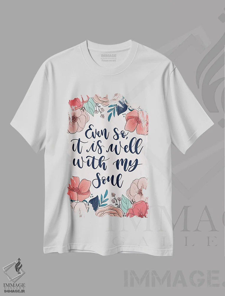 تیشرت سفید طرح دار مزامیر ۴:۷، دکور معاصر اثر کیتی برایانت | فروشگاه ایماژ تیشرت طرح دار مزامیر :اثر کیتی برایانت
