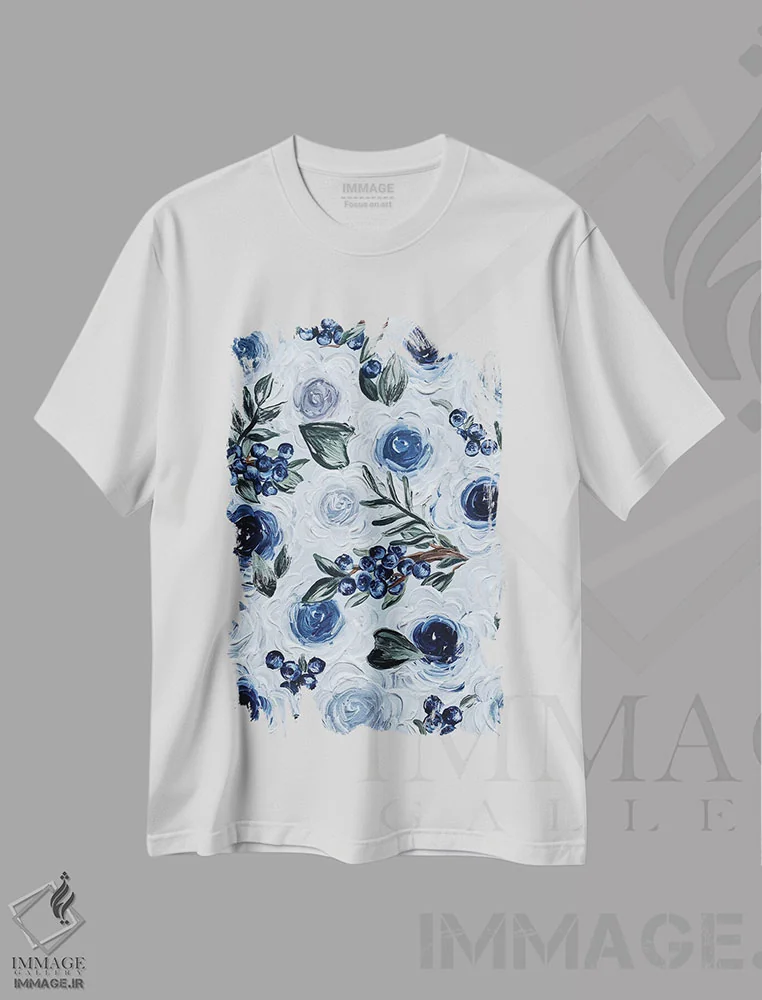 تیشرت سفید طرح دار گل های طراحی شده بلوبری، تزئینی اثر کیتی برایانت | فروشگاه ایماژ تیشرت طرح دار گل های طراحی شده بلوبری اثر کیتی برایانت