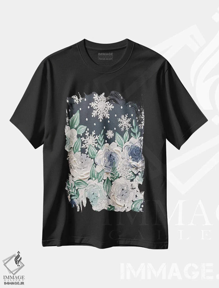 تیشرت مشکی طرح دار گل های برفی، هنر دیجیتال اثر کیتی برایانت | فروشگاه ایماژ تیشرت طرح دار گل های برفی اثر کیتی برایانت
