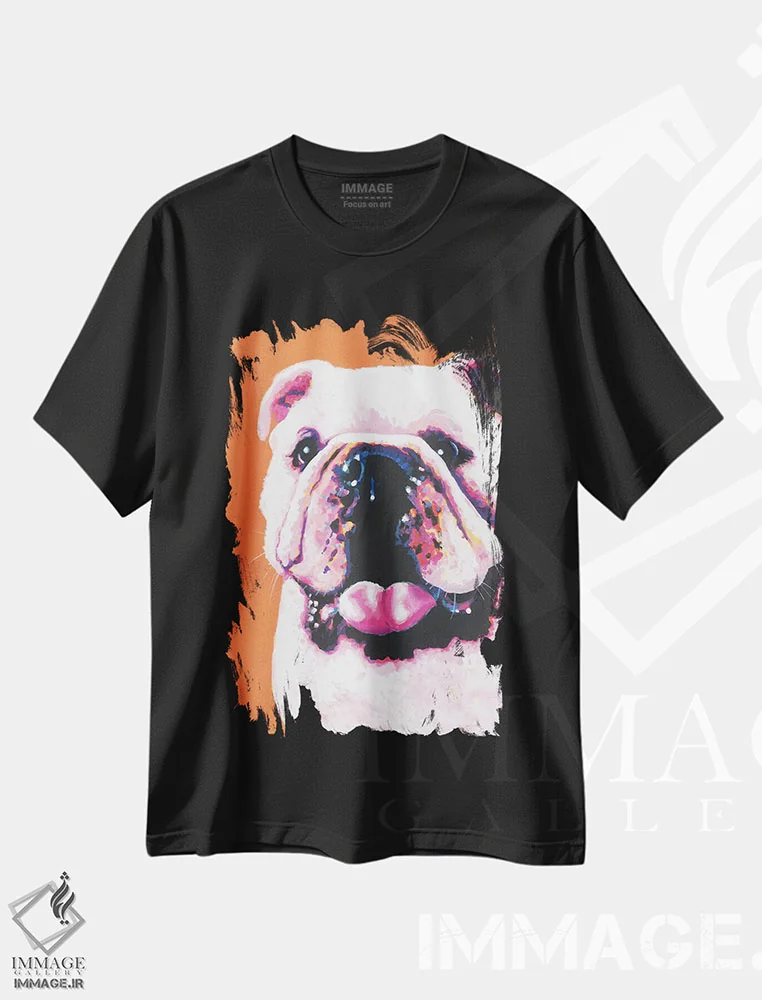تیشرت مشکی طرح دار بولداگ روی زمینه نارنجی، مدیوم اثر کیرستین وود | فروشگاه ایماژ تیشرت طرح دار بولداگ روی زمینه نارنجی اثر کیرستین وود