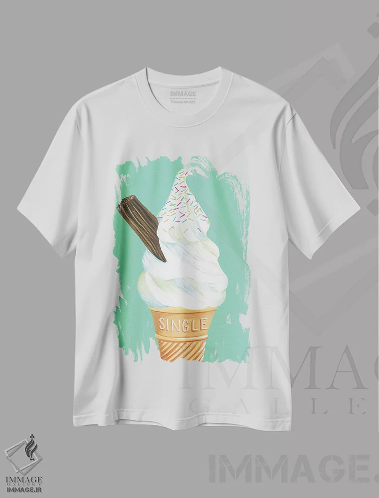 تیشرت سفید طرح دار بستنی روی زمینه سبز نعنایی، هنر فاخر معاصر اثر کیرستین وود | فروشگاه ایماژ تیشرت طرح دار بستنی روی زمینه سبز نعنایی اثر کیرستین وود