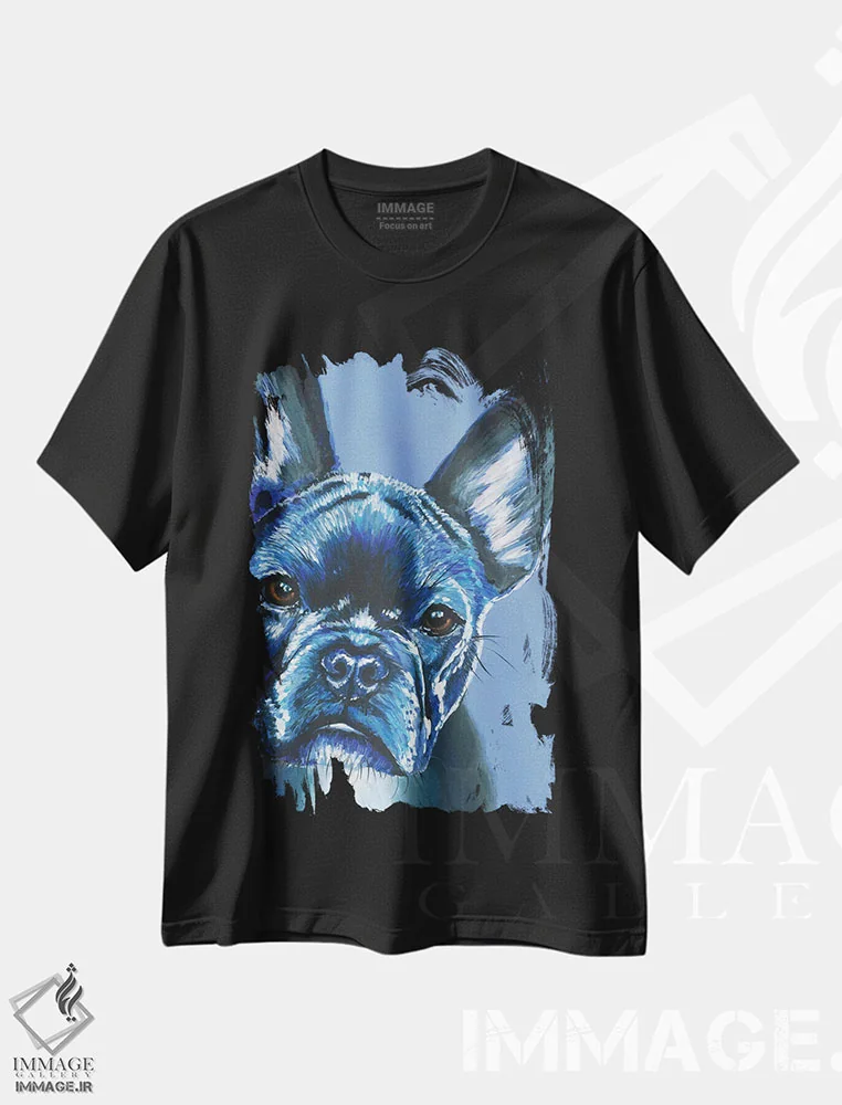 تیشرت مشکی طرح دار فرنچ بولداگ روی زمینه آبی، مدیوم اثر کیرستین وود | فروشگاه ایماژ تیشرت طرح دار فرنچ بولداگ روی زمینه آبی اثر کیرستین وود