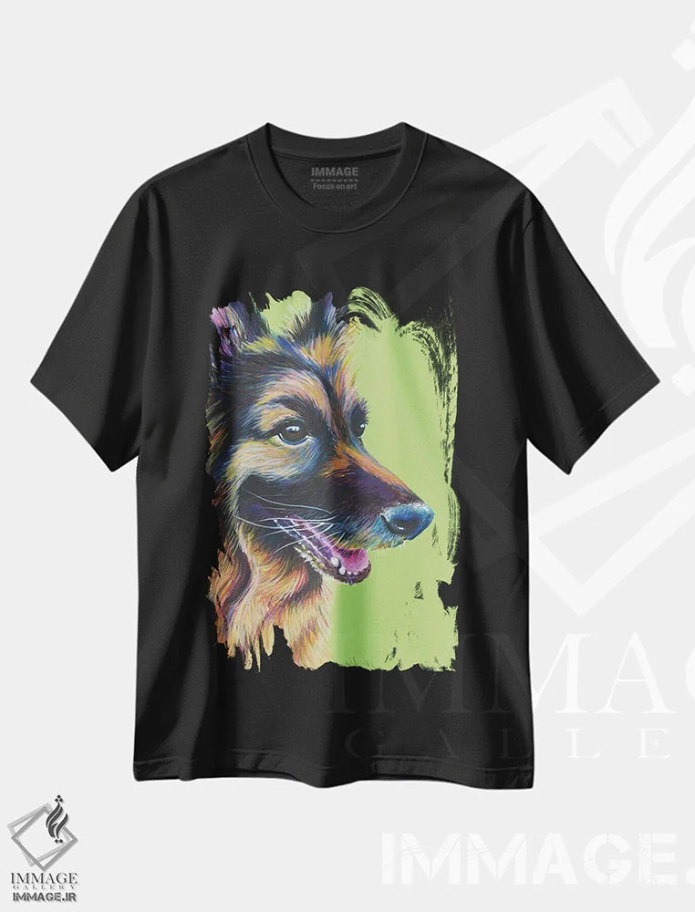 تیشرت مشکی طرح دار ژرمن شپرد روی زمینه سبز لیمویی، مدیوم اثر کیرستین وود | فروشگاه ایماژ تیشرت طرح دار ژرمن شپرد روی زمینه سبز لیمویی اثر کیرستین وود