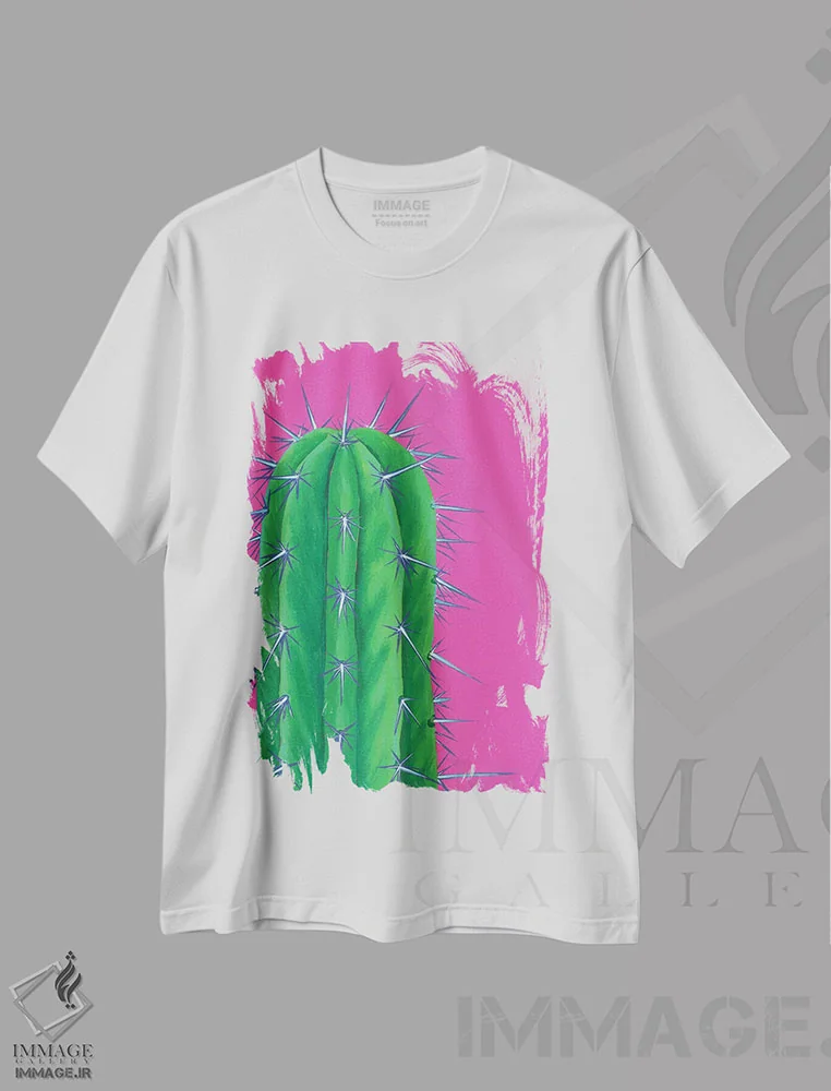 تیشرت سفید طرح دار کاکتوس تیغ دار، تزئینی اثر کیرستین وود | فروشگاه ایماژ تیشرت طرح دار کاکتوس تیغ دار اثر کیرستین وود