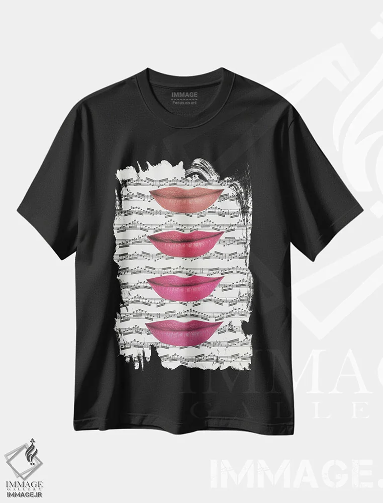 تیشرت مشکی طرح دار بوسیدن موسیقی، مدیوم اثر کیکی سی لندن | فروشگاه ایماژ