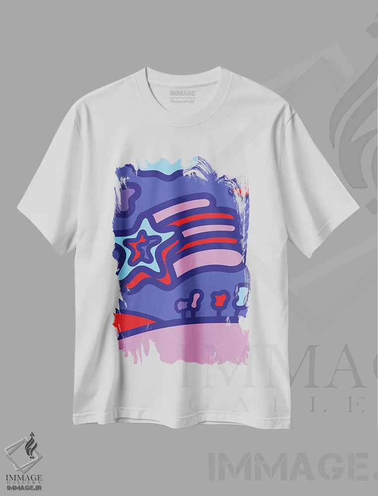 تیشرت سفید طرح دار پاپ میهن پرست، دکور معاصر اثر گرگ مابلی | فروشگاه ایماژ تیشرت طرح دار پاپ میهن پرست اثر گرگ مابلی