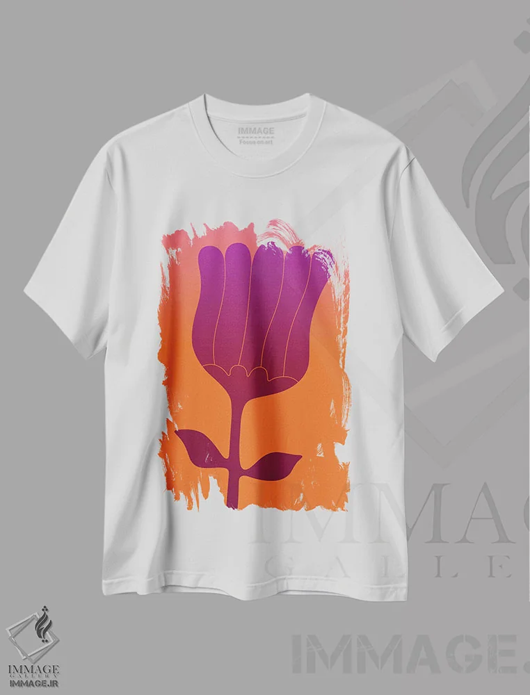 تیشرت سفید طرح دار گل، تزئینی اثر گرگ مابلی | فروشگاه ایماژ