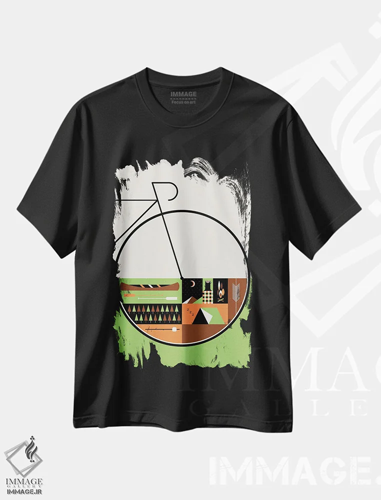 تیشرت مشکی طرح دار منظر شادی، دکور معاصر اثر گرگ مابلی | فروشگاه ایماژ