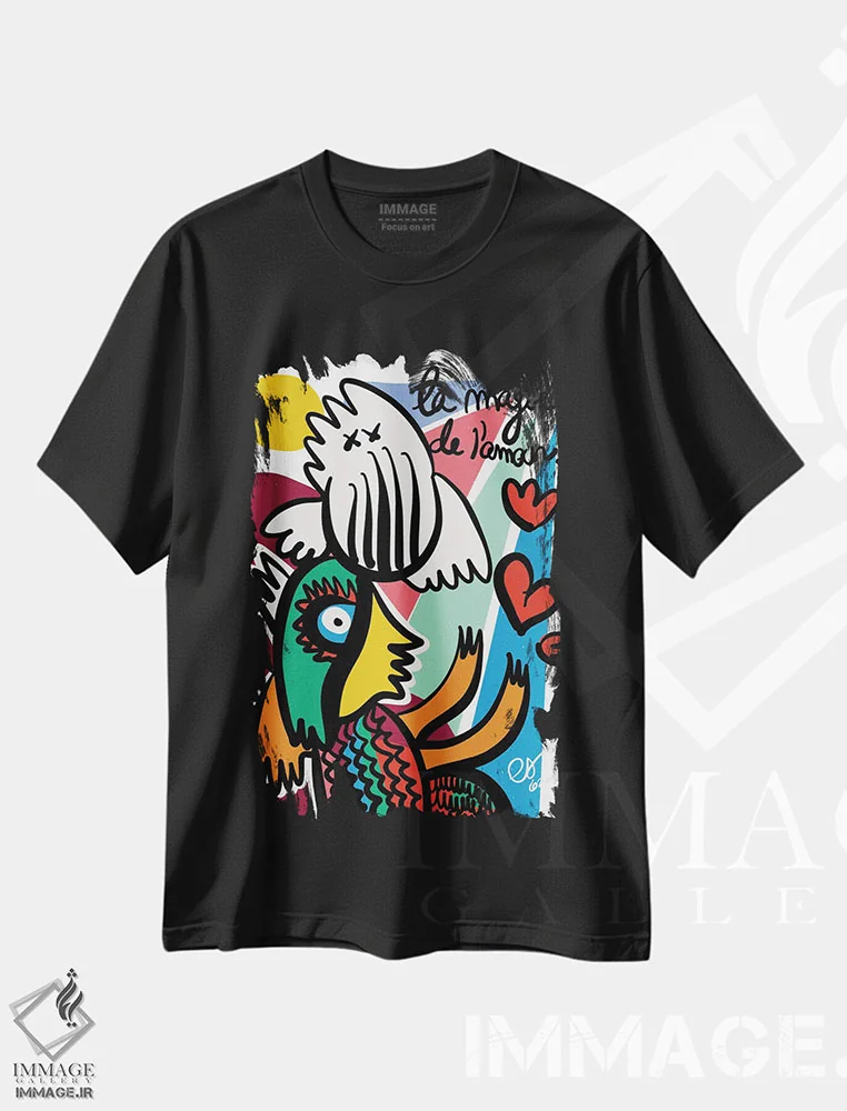 تیشرت مشکی طرح دار جادوی عشق، تزئینی اثر امانوئل سیگنورینو | فروشگاه ایماژ تیشرت طرح دار جادوی عشق اثر امانوئل سیگنورینو