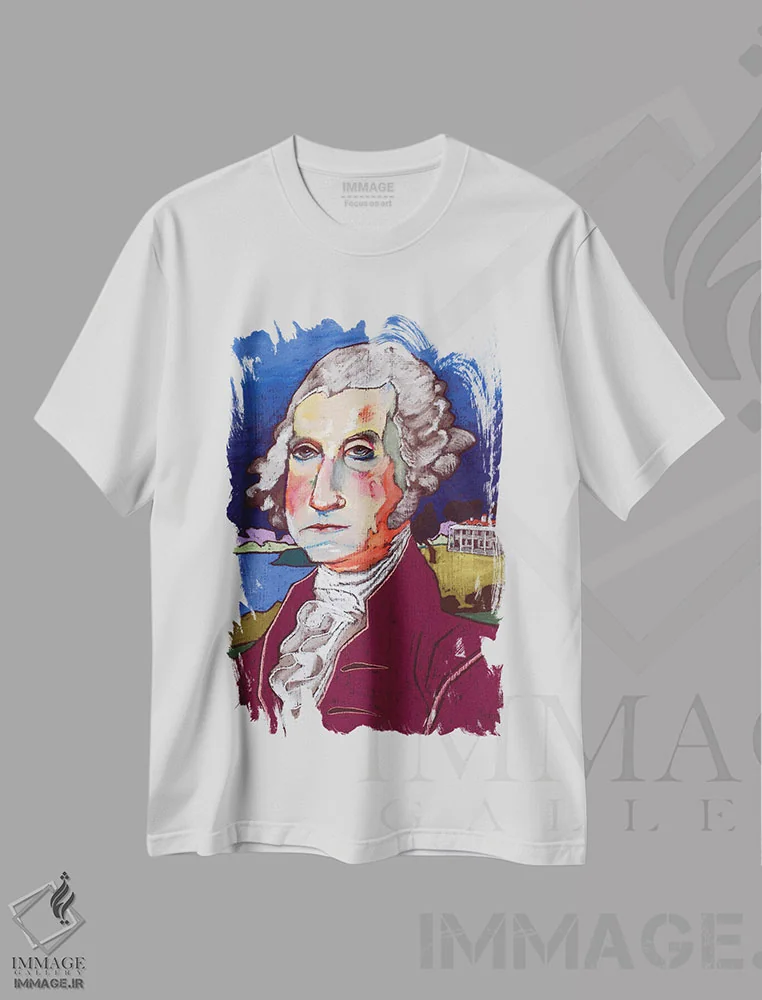 تیشرت سفید طرح دار پرتره جرج واشنگتن، تزئینی اثر دیویدای هینْدز | فروشگاه ایماژ تیشرت طرح دار پرتره جرج واشنگتن اثر دیویدای هینْدز