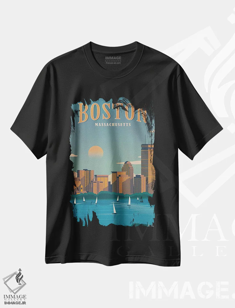 تیشرت مشکی طرح دار بوستون، تزئینی اثر ایدیااستورم استودیوز | فروشگاه ایماژ تیشرت طرح دار بوستون اثر ایدیااستورم استودیوز