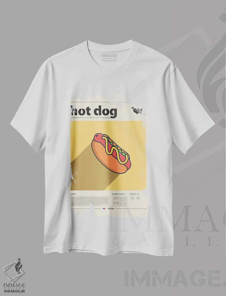 تیشرت سفید طرح دار هات داگ، تزئینی اثر گاستروورلد | فروشگاه ایماژ تیشرت طرح دار هات داگ اثر گاستروورلد
