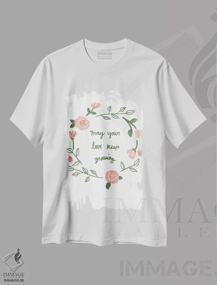 تیشرت سفید طرح دار عشق همچنان رشد می کند، تزئینی اثر جسیکا بروگینک | فروشگاه ایماژ تیشرت طرح دار عشق همچنان رشد می کند اثر جسیکا بروگینک