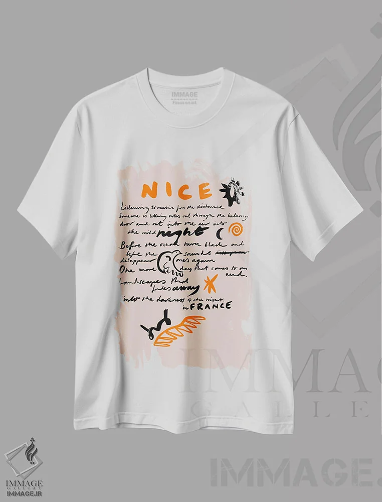 تیشرت سفید طرح دار تابستان در نیس - بژ، تزئینی اثر کارولینا کلینگ | فروشگاه ایماژ تیشرت طرح دار تابستان در نیس - بژ اثر کارولینا کلینگ