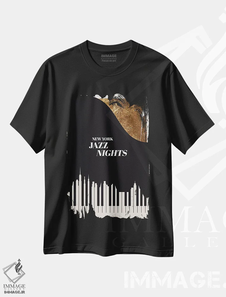 تیشرت مشکی طرح دار شب های جاز، تزئینی اثر کوبیستیکا | فروشگاه ایماژ تیشرت طرح دار شب های جاز اثر کوبیستیکا