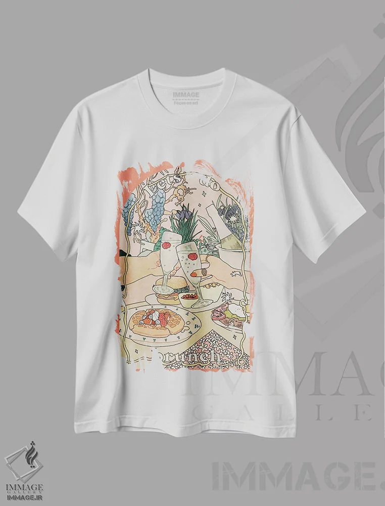 تیشرت سفید طرح دار بیا ناهار دیرهنگام بخوریم، انیمه اثر لوسی میشل | فروشگاه ایماژ تیشرت طرح دار بیا ناهار دیرهنگام بخوریم اثر لوسی میشل